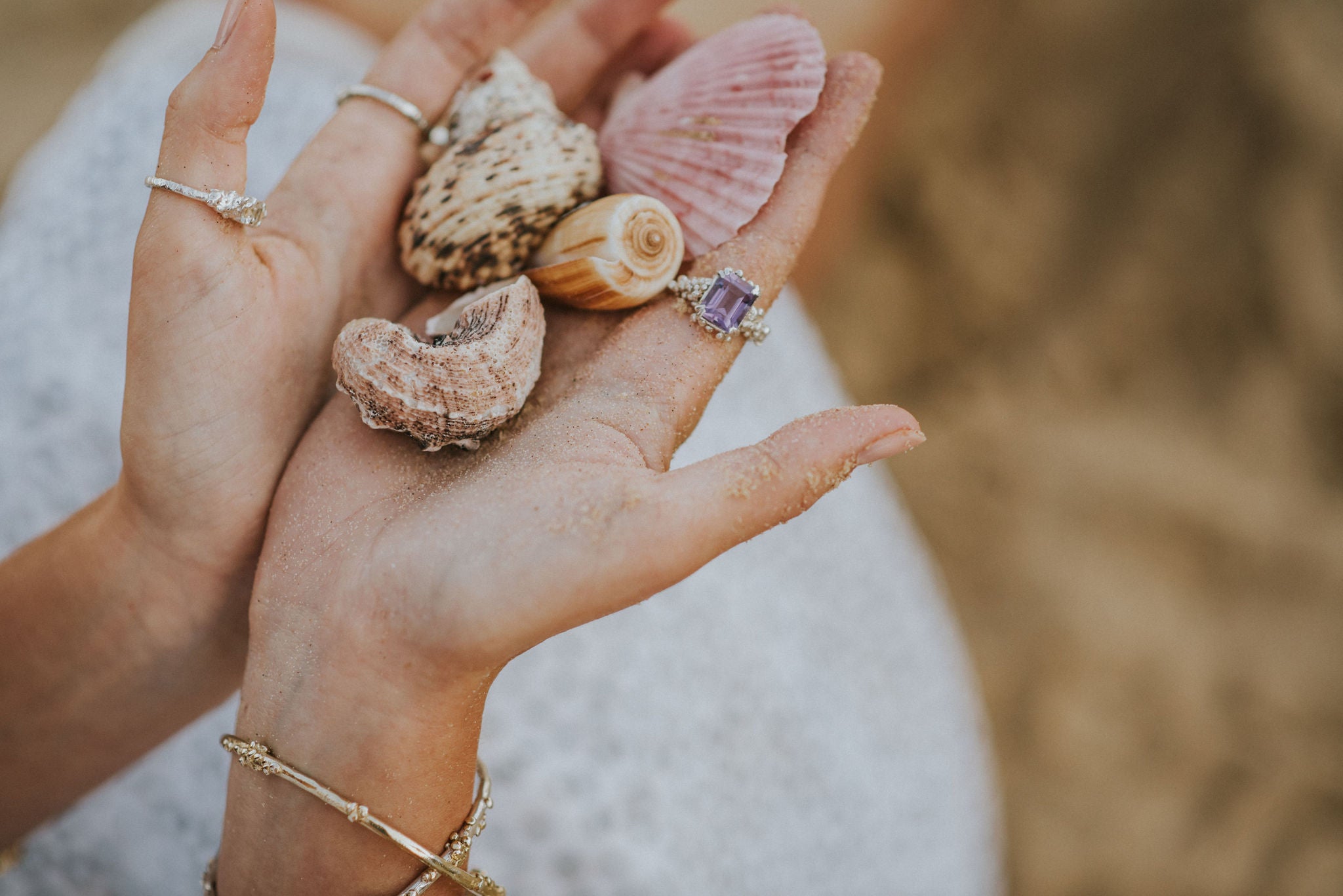 When Jade was seven, she found a tiny seashell buried in the sand while waiting for her father's boat to return. She kept that little seashell and has now transformed it into stunning pieces of recycled silver and gold, capturing the magic and wonder of our inner child.
