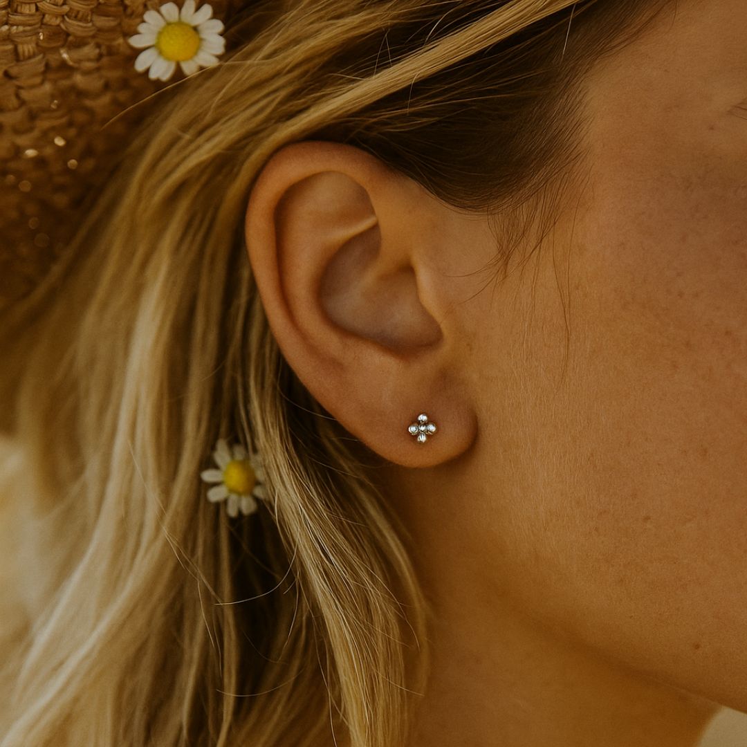 Treat yourself to these Dainty Cluster Studs. Created with Sterling Silver, the tiny barnacle clusters add a little touch of elegance. At 0.3cm in diameter, they're perfect for stacking or wearing solo.