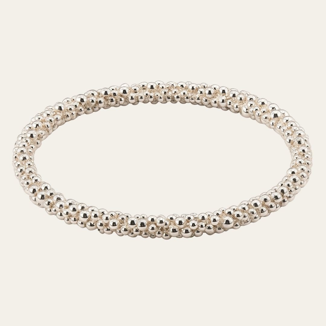 Inspired by the English countryside, the Grain Bangle showcases a rustic yet elegant design, crafted from recycled sterling silver using cast oats, quinoa, and poppy seeds. Finished with a granulation technique, this bangle is perfect for wearing alone or stacked.