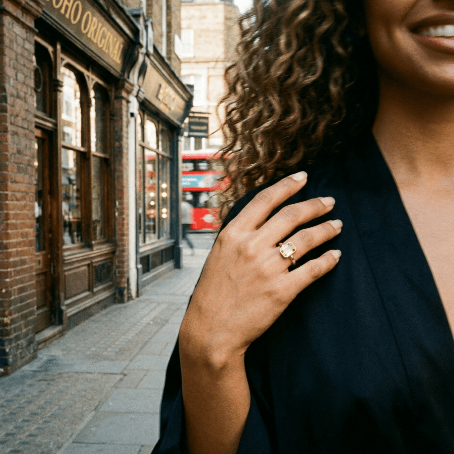 Tidewashed Citrine Ring - Octagonal Citrine & Hammered Band