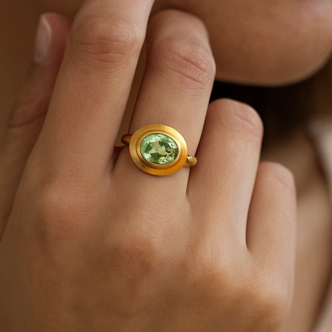 Solid Gold Green Quartz Modern Ring - Margo, Ocean-Inspired – Dainty London