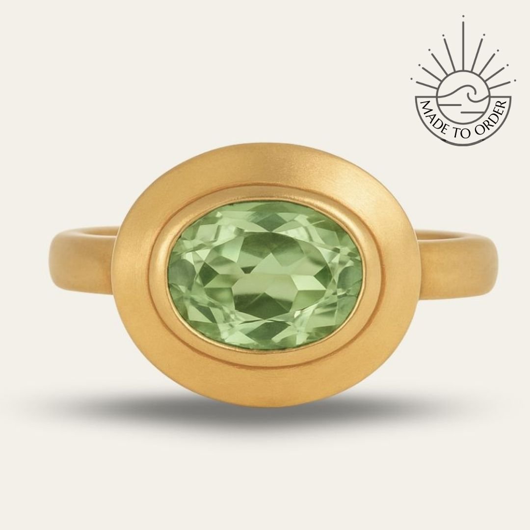 Solid Gold Margo Ring - Green Quartz Modern Luxury Rings - Dainty London solid gold ring, green quartz jewellery, ocean-inspired ring, bespoke jewellry, UK size rings, handmade jewelry, gift for her, statement ring, ethical gold jewellery, modern gemstone ring, custom ring, ocean green gemstone, gift for special occasions