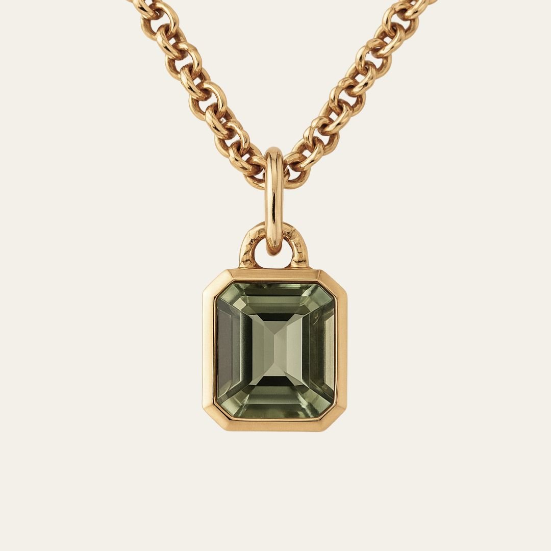 Our ocean-inspired elegance necklace features a graceful 12x10mm Ocean Green Quartz gemstone set in sterling silver and 18ct Gold Vermeil. The 2cm pendant hangs beautifully from a substantial 50cm chunky belcher chain, offering sophisticated versatility for both casual and evening wear.