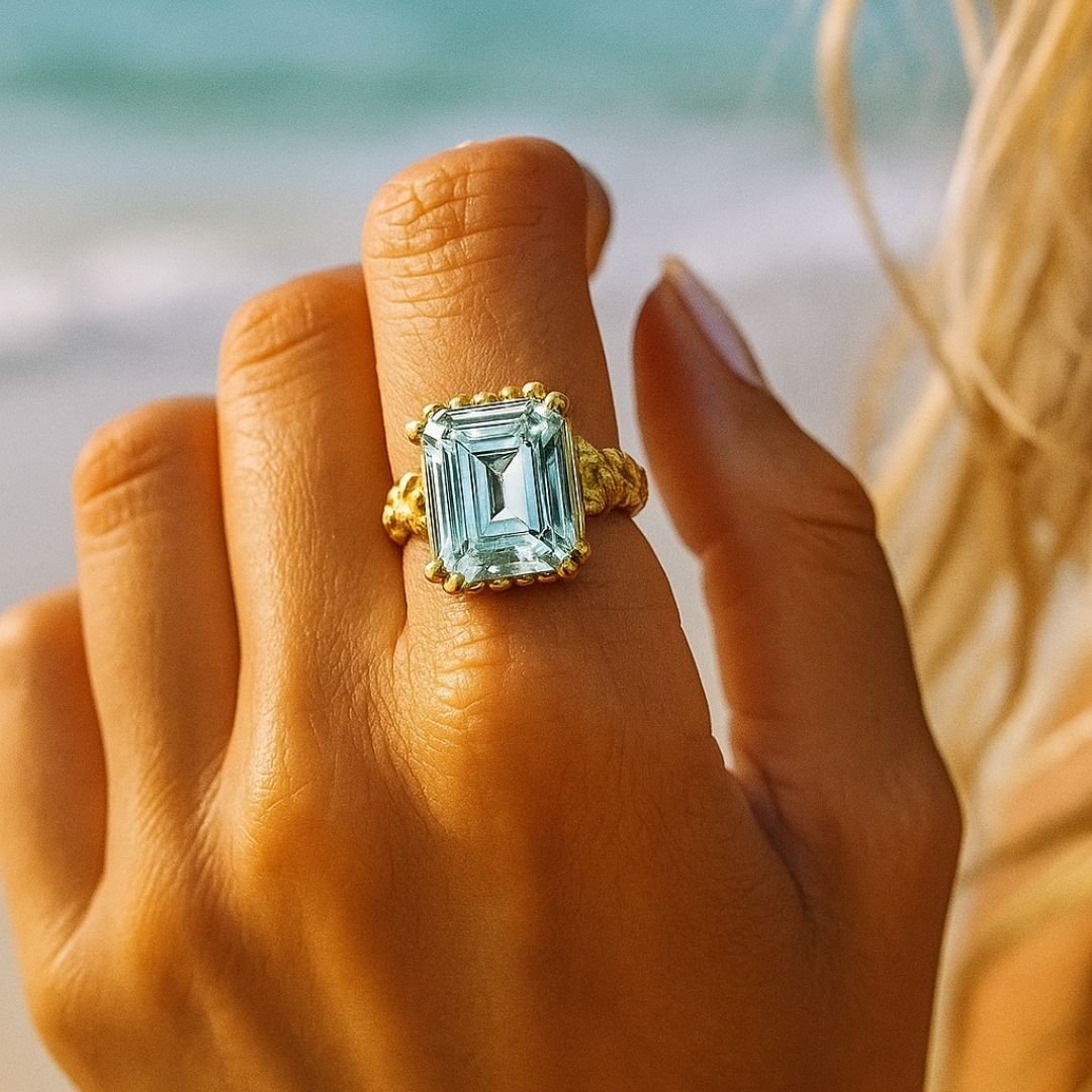 Solid Gold Ocean Blue Beryl Gemstone Ring - Seraphina